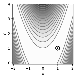 f(x, y) = 100 \cdot (x^2 - y)^2 + (1 - x)^2